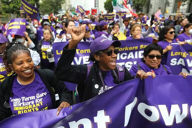 洛杉矶更热闹:5000人把市中心变成“劳工声援现场”,建筑工人举着“赶走外来劳工,谁来盖房子?”的牌子,餐馆老板举着“招不到人,店都要倒闭了”的横幅,连外卖小哥都加入队伍:“最低工资不涨反降,我们拿什么养活自己?”